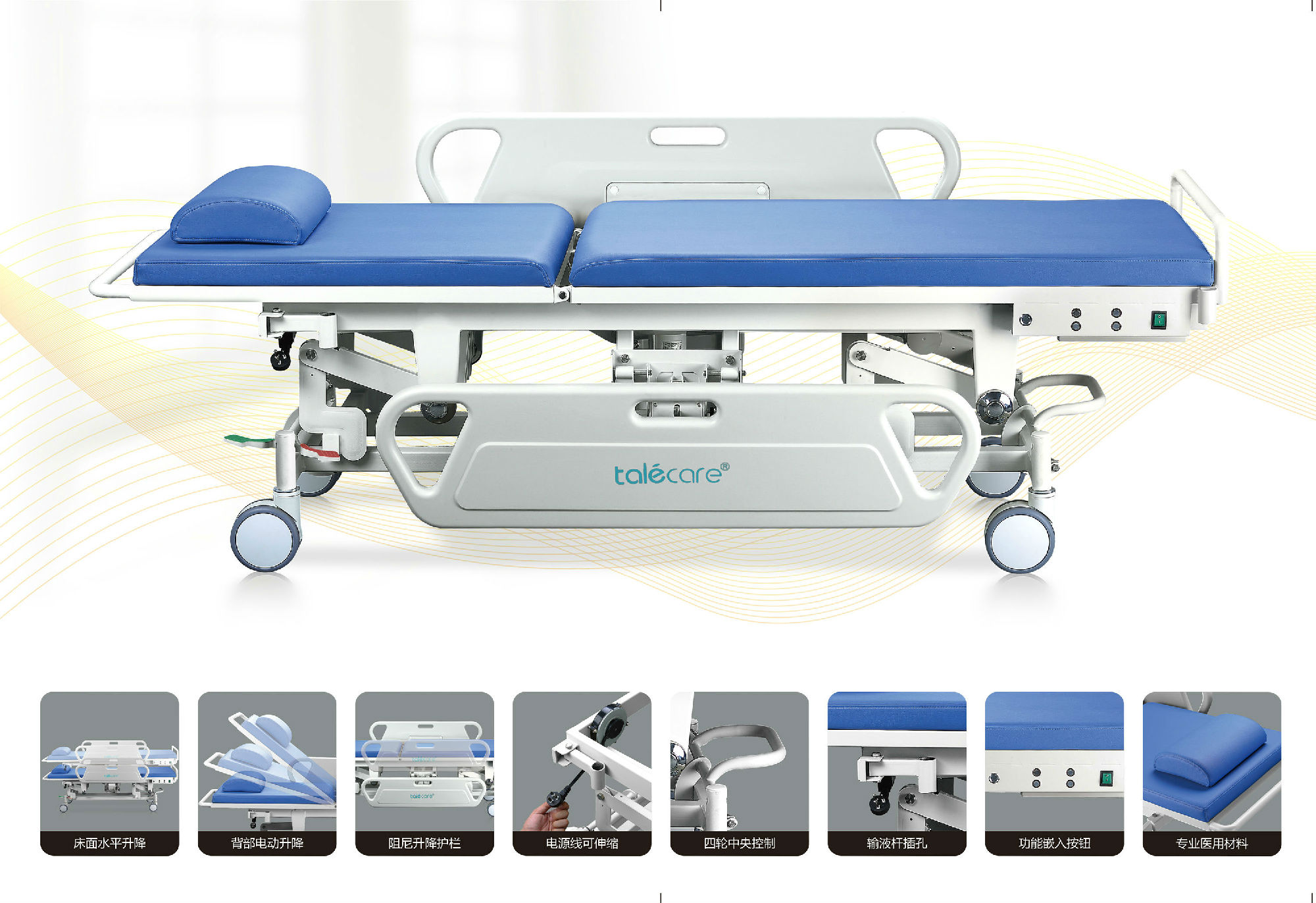 ③四輪中央控制系統(tǒng),方便患者移動(dòng)轉(zhuǎn)運(yùn)