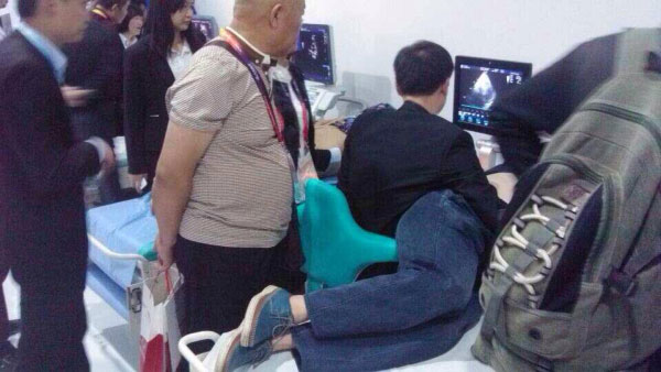 圖二:展會中,客戶在體驗(yàn)telacare泰樂康產(chǎn)品