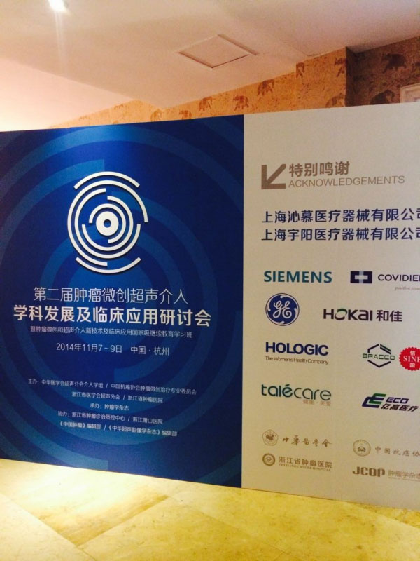 第二屆腫瘤微創(chuàng)、超聲介入學科發(fā)展及臨床應(yīng)用研討會(浙江杭州)于2014年11月7日~9日在浙江杭州第一世界大酒店舉行,泰樂康talecare全程贊助。新產(chǎn)品:電動超聲介入“診療床”,得到廣大醫(yī)生主任的青睞和好評!圖一:會議現(xiàn)場圖二:會議現(xiàn)場圖三:泰樂康展位圖四:浙江陳家輝經(jīng)理在認真給上海瑞金醫(yī)院王主任演示新產(chǎn)品電動超聲介入“診療床”。圖五:王主任看產(chǎn)品彩頁中。。
